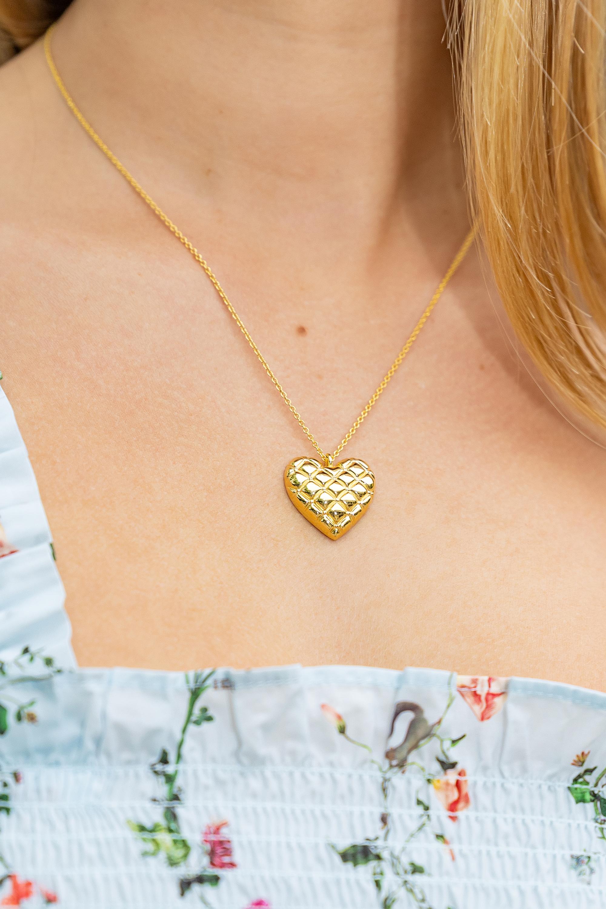 Elizabeth Quilted Heart Charm Necklace (on simple chain)