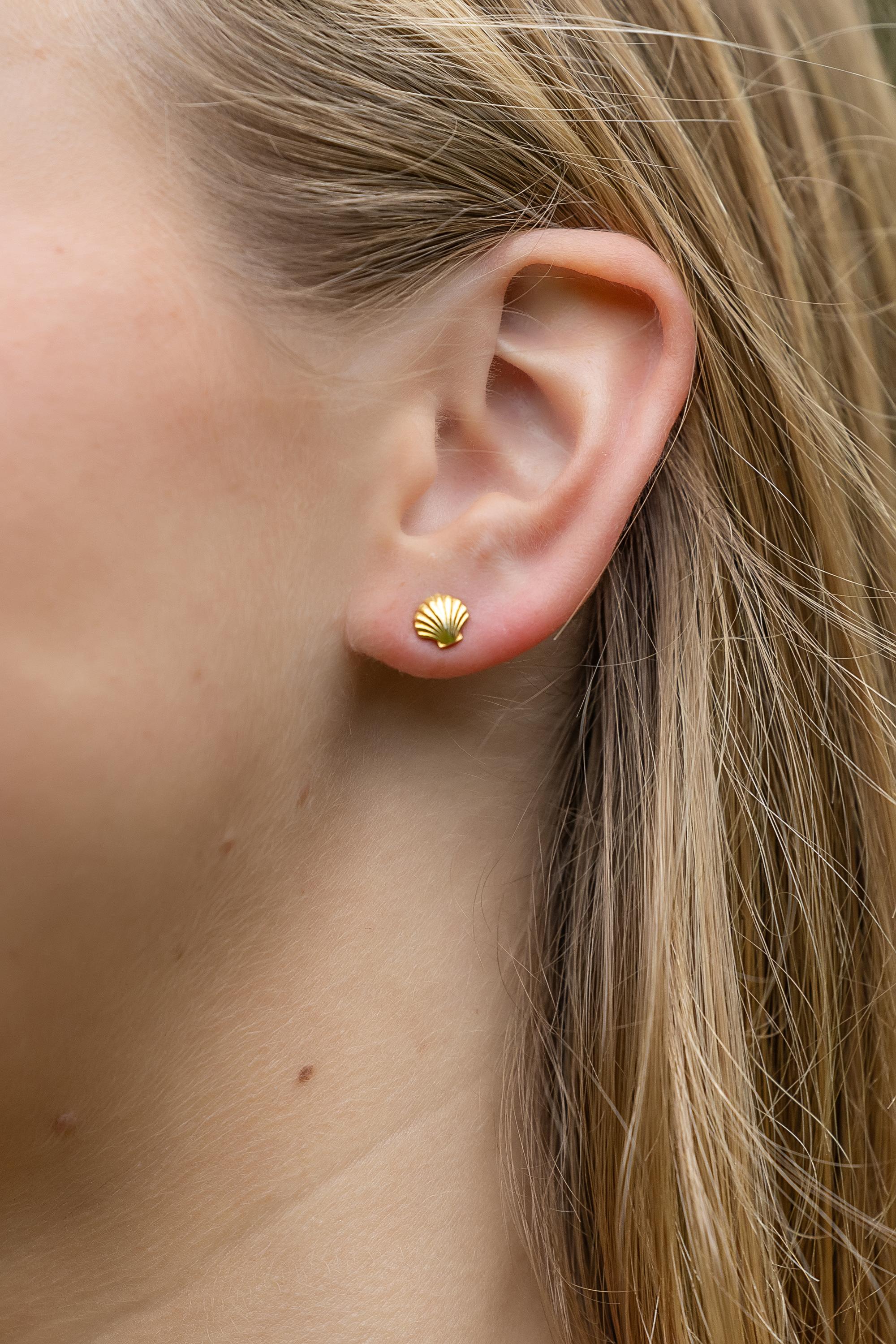 Ocean Shell Tiny Gold Stud Earring