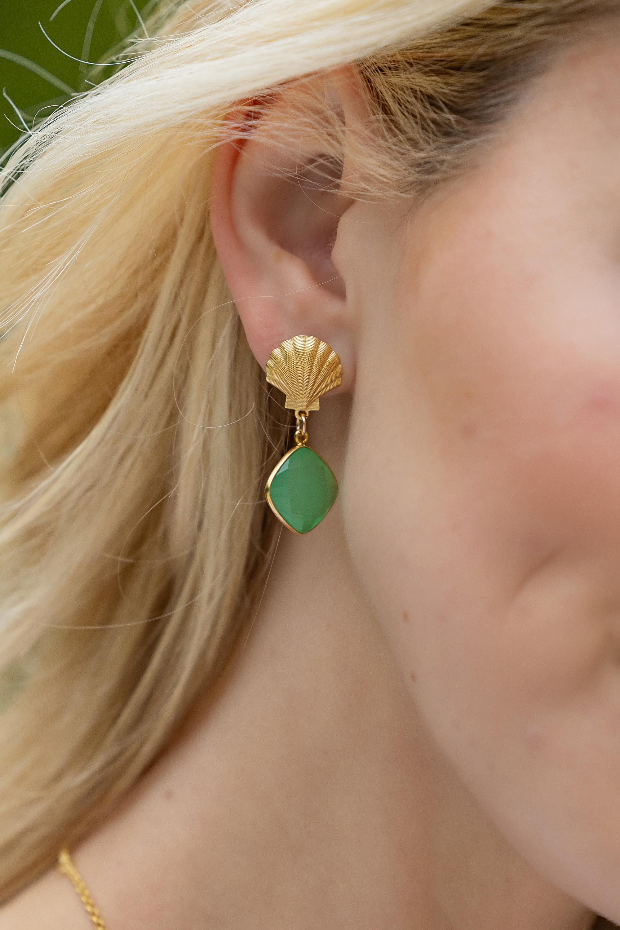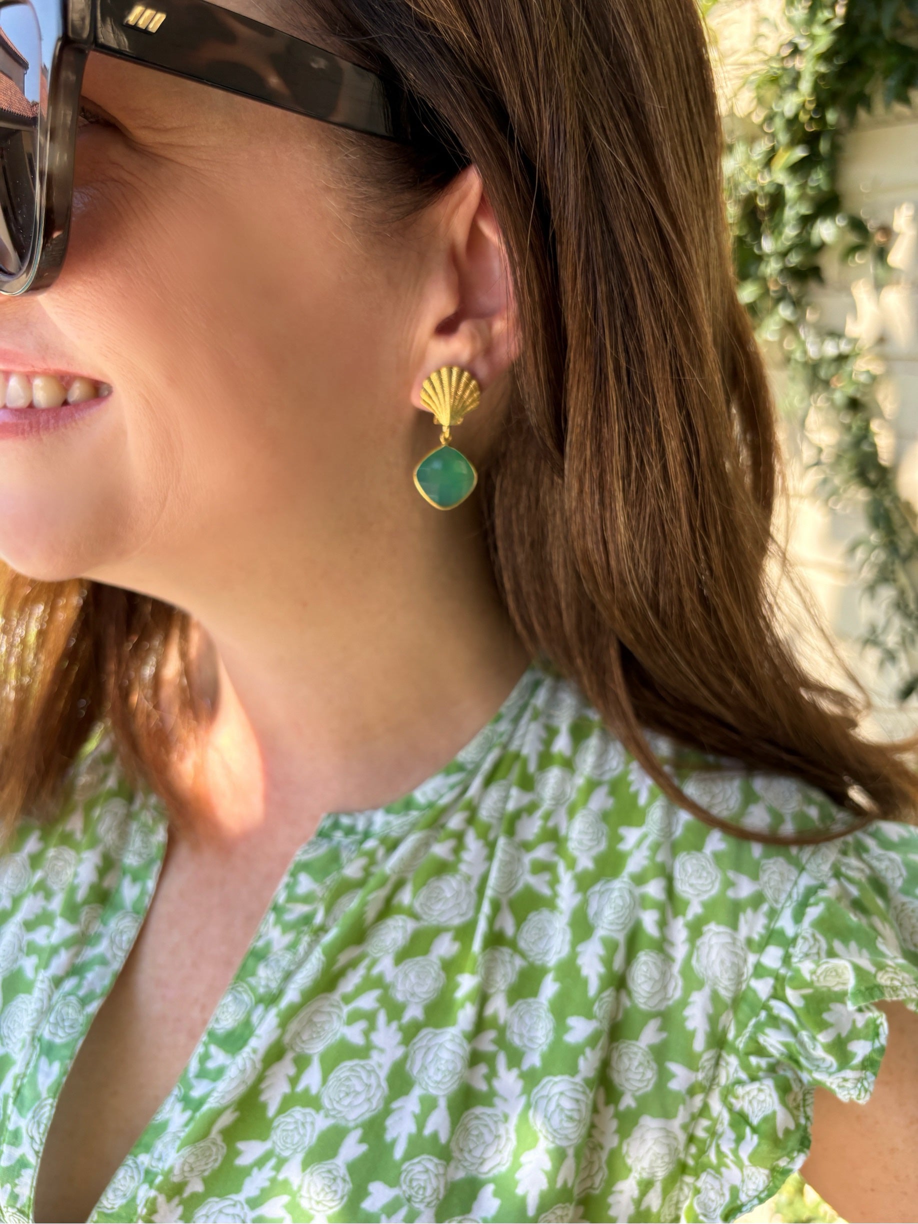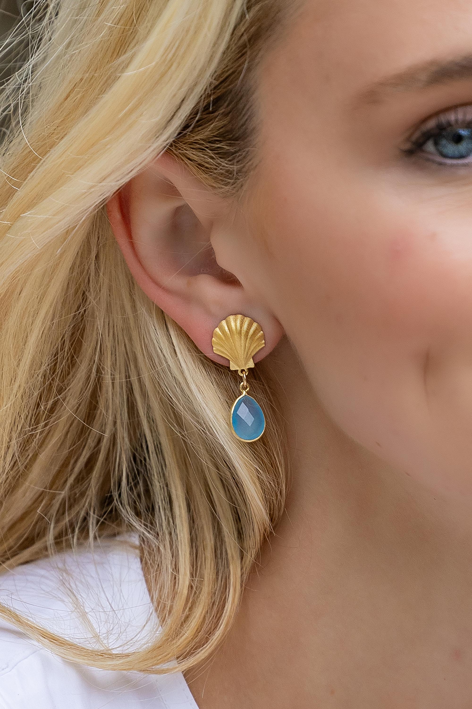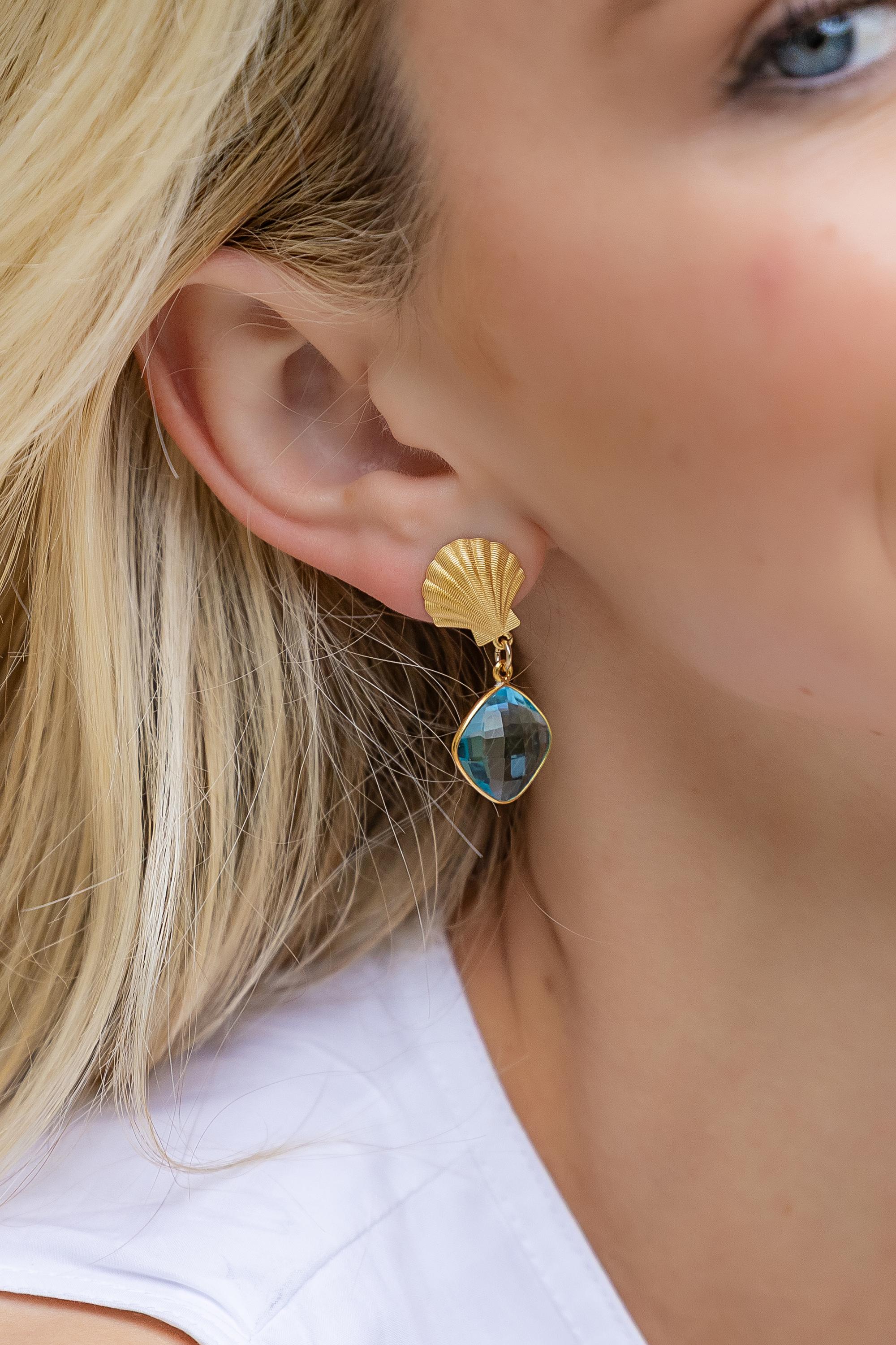 Ocean Shell Aqua Quartz Drop Shell Earring