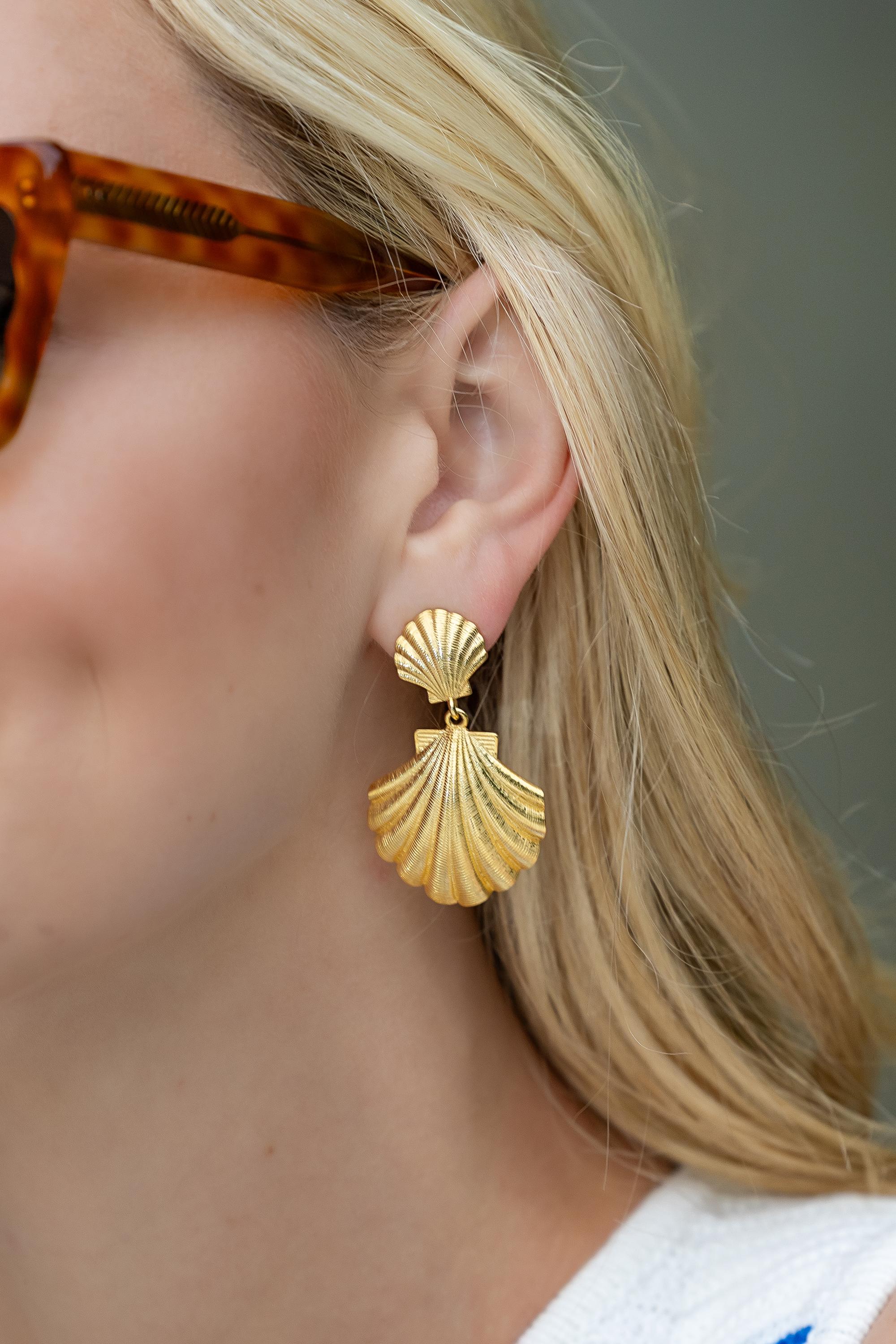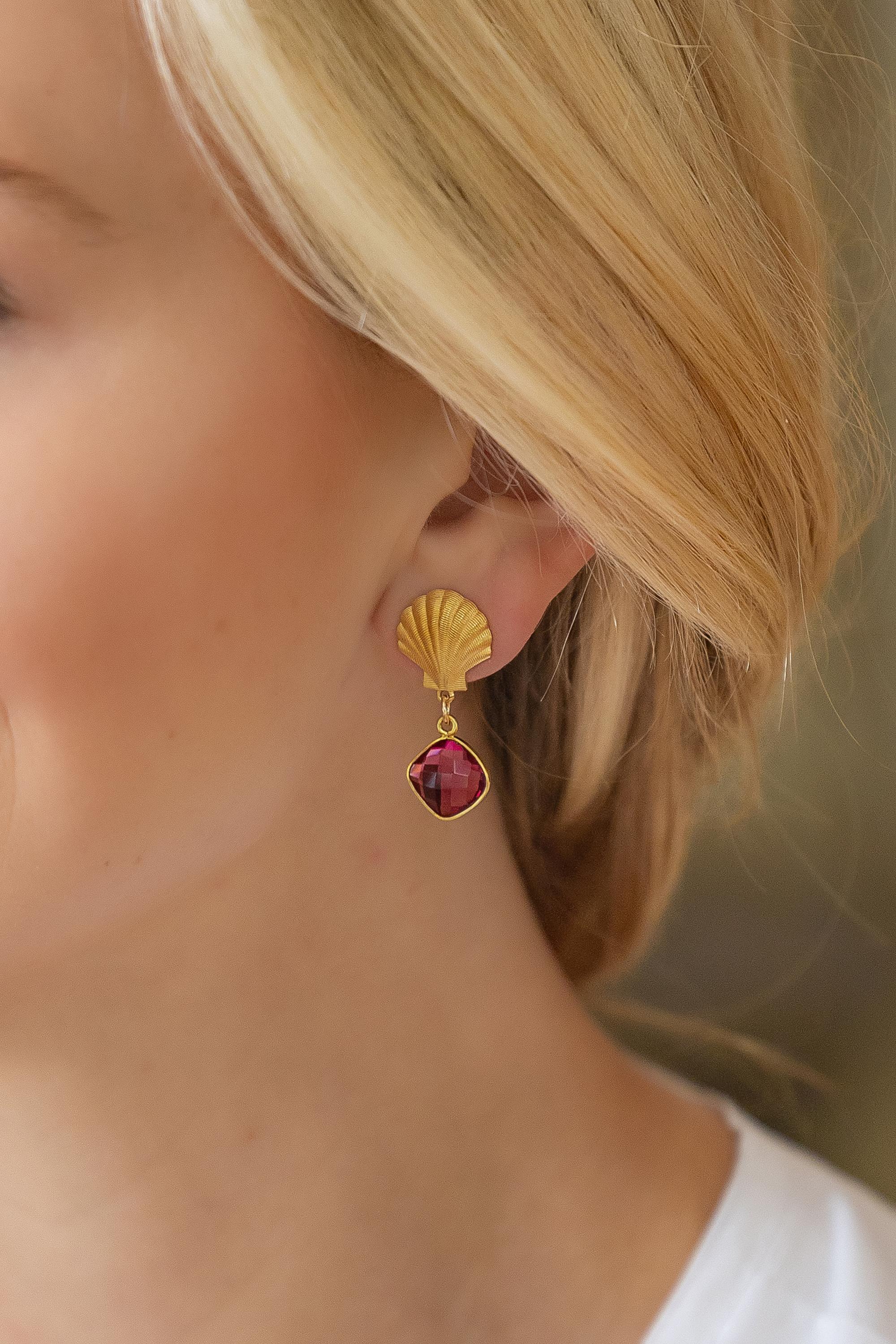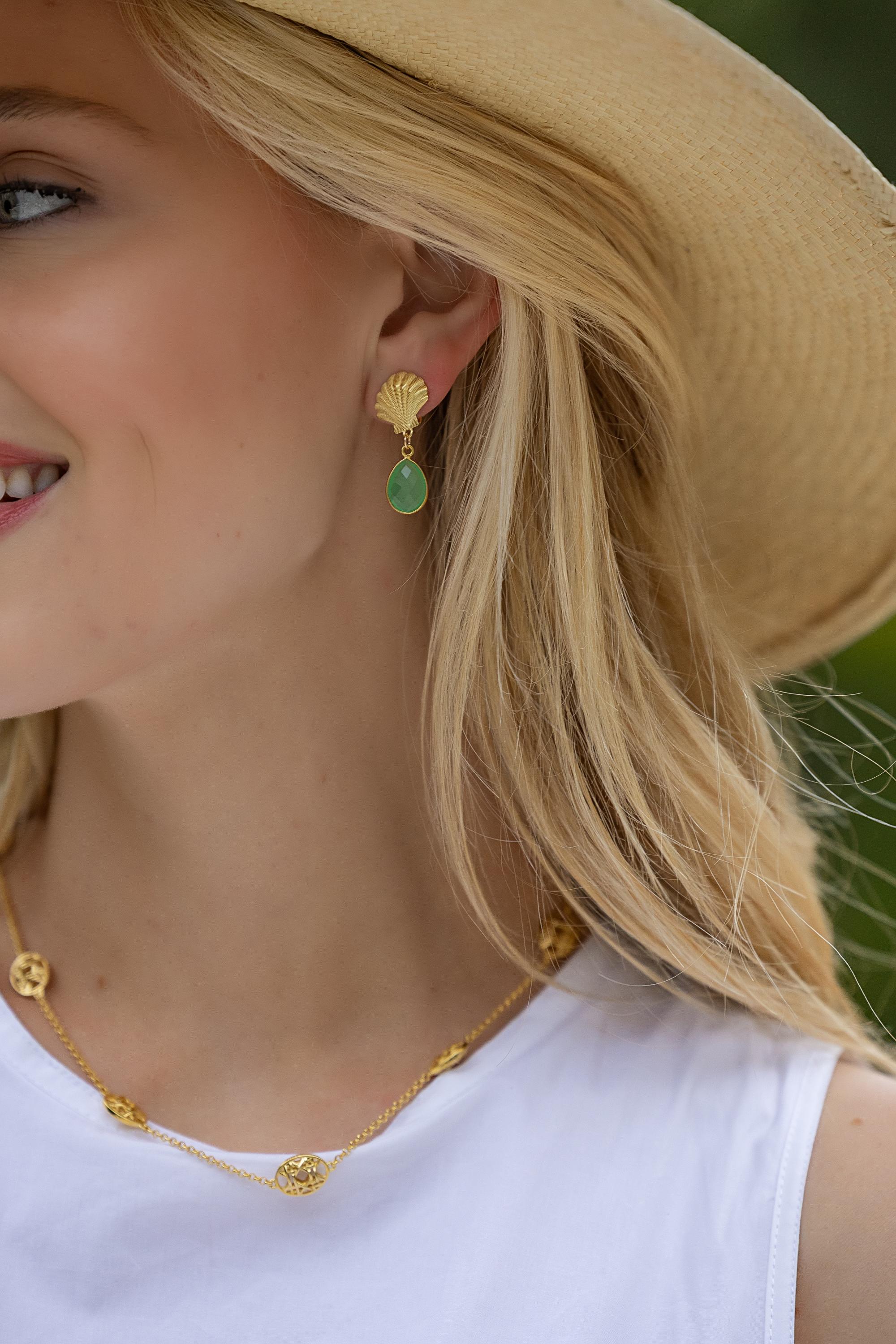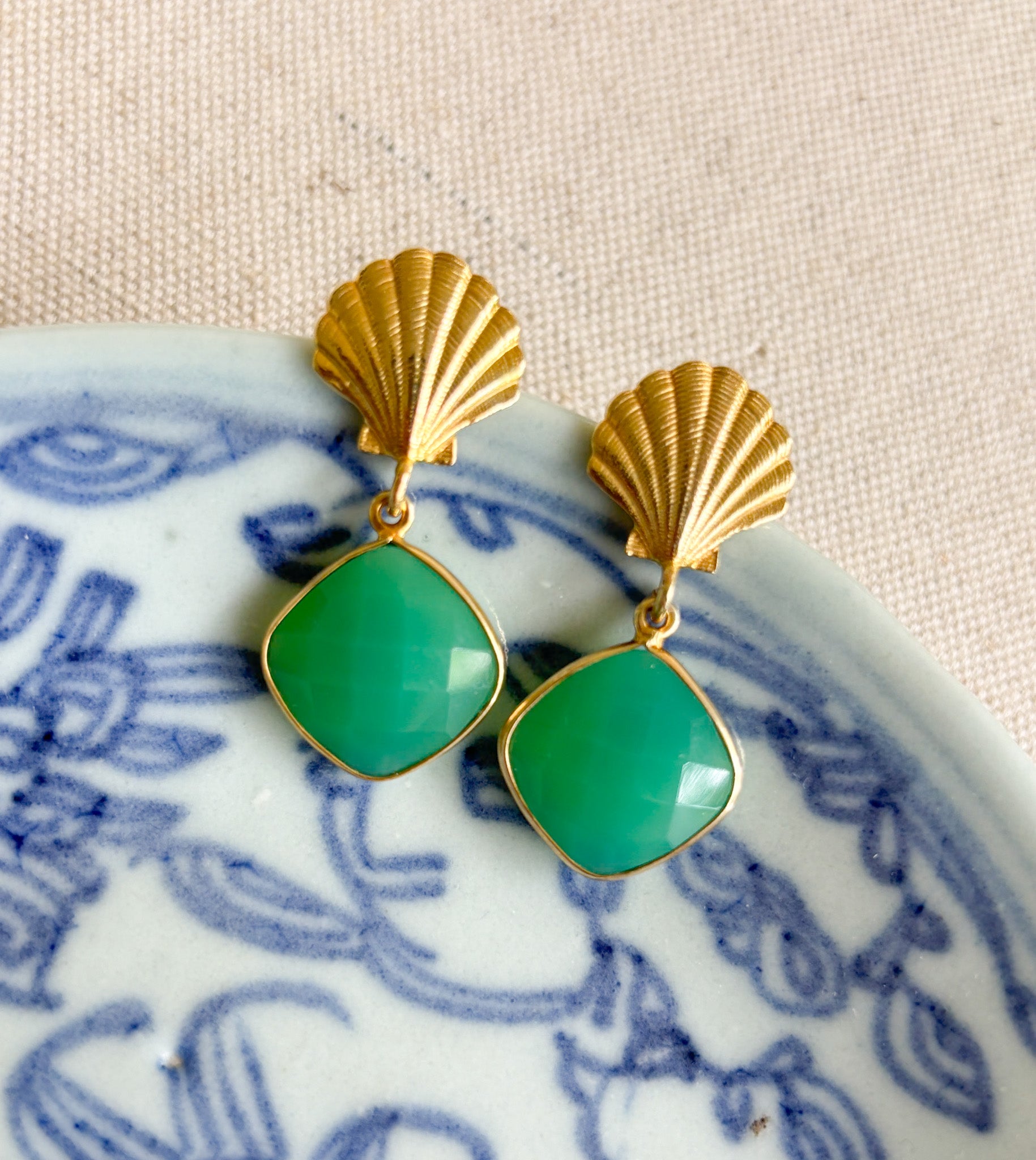 Ocean Shell Aqua Quartz Drop Shell Earring