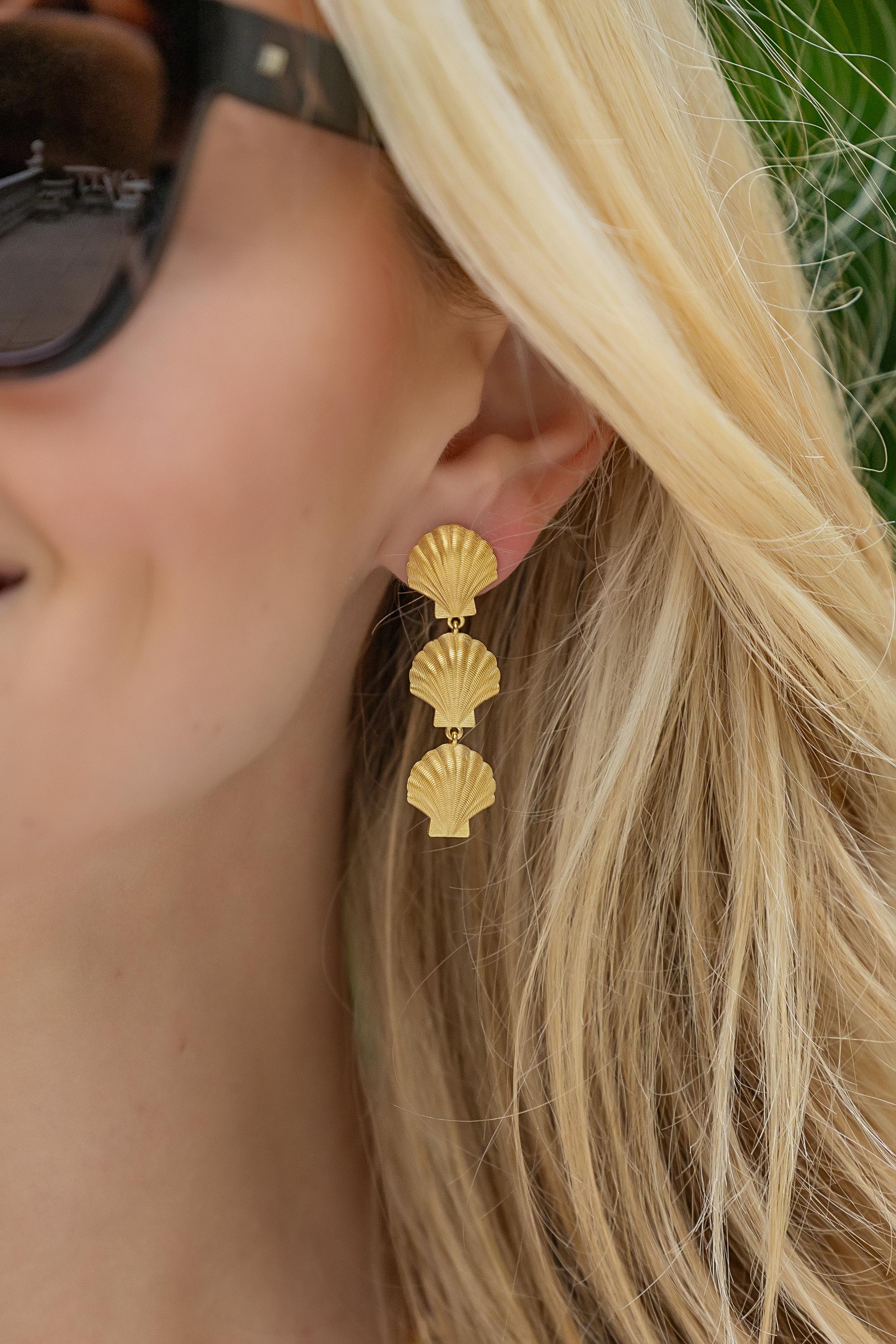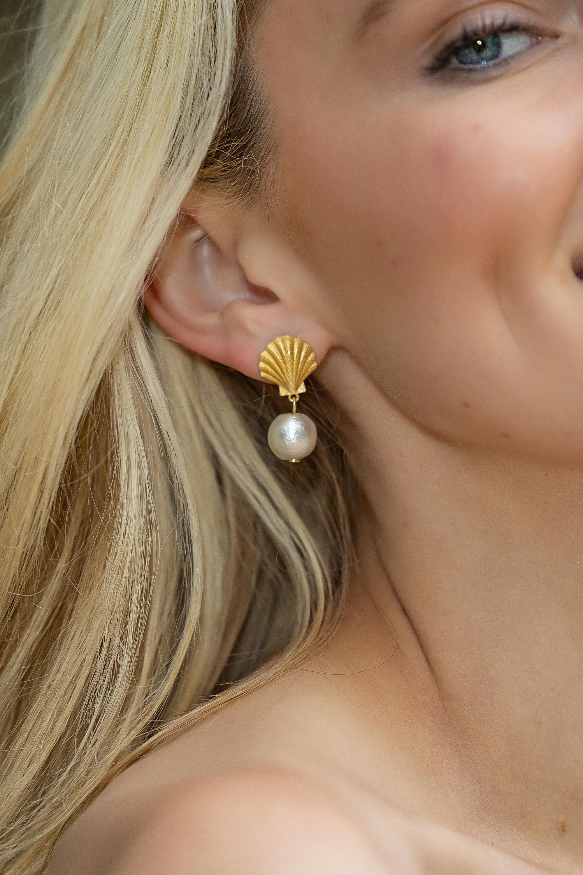Ocean Shell Triple Cotton Pearl Triple Earring