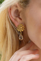 Jardin Hydrangea Gold Clear Crystal Quartz Earrings